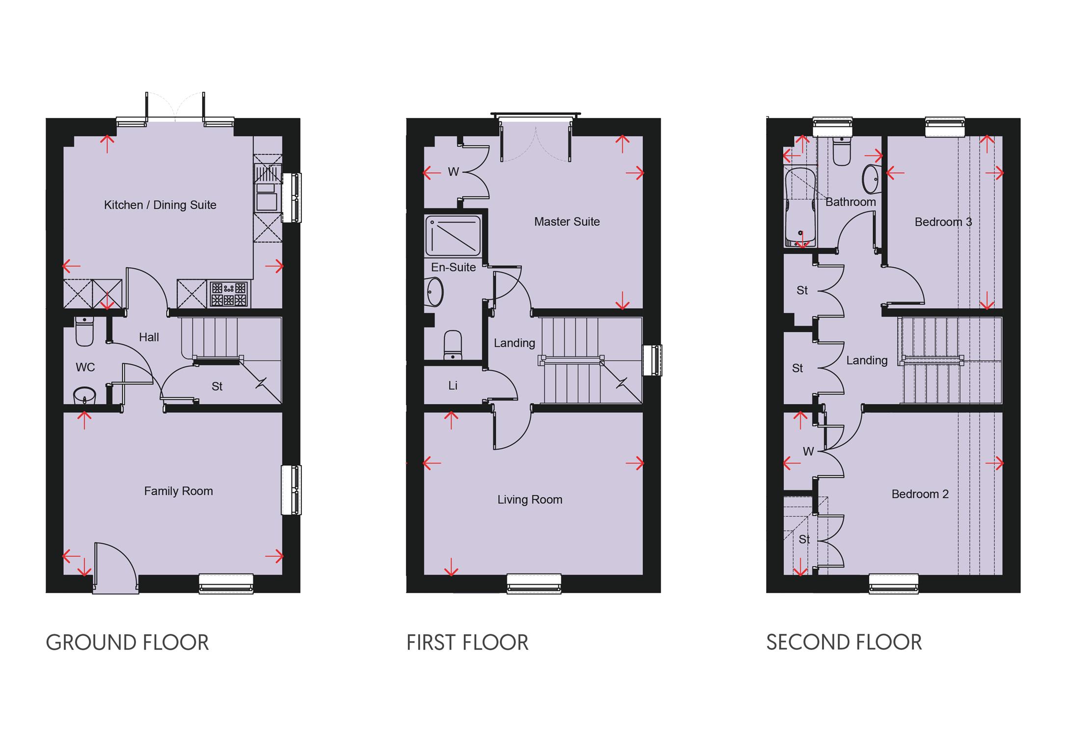 The Compton range has been thoughtfully designed to offer versatile accommodation, to meet the ever-changing demands of family life. The all-inclusive specification features integrated appliances - including double oven, extra wide hob, feature hood, dishwasher, washer dryer and fridge freezer. We’ve included contemporary vinyl flooring to the kitchen/dining suite, wc, en-suite and family bathroom. We’ve included a shower over the bath and chrome towel rails. We’ve enclosed the rear garden and included an outside tap and turf.