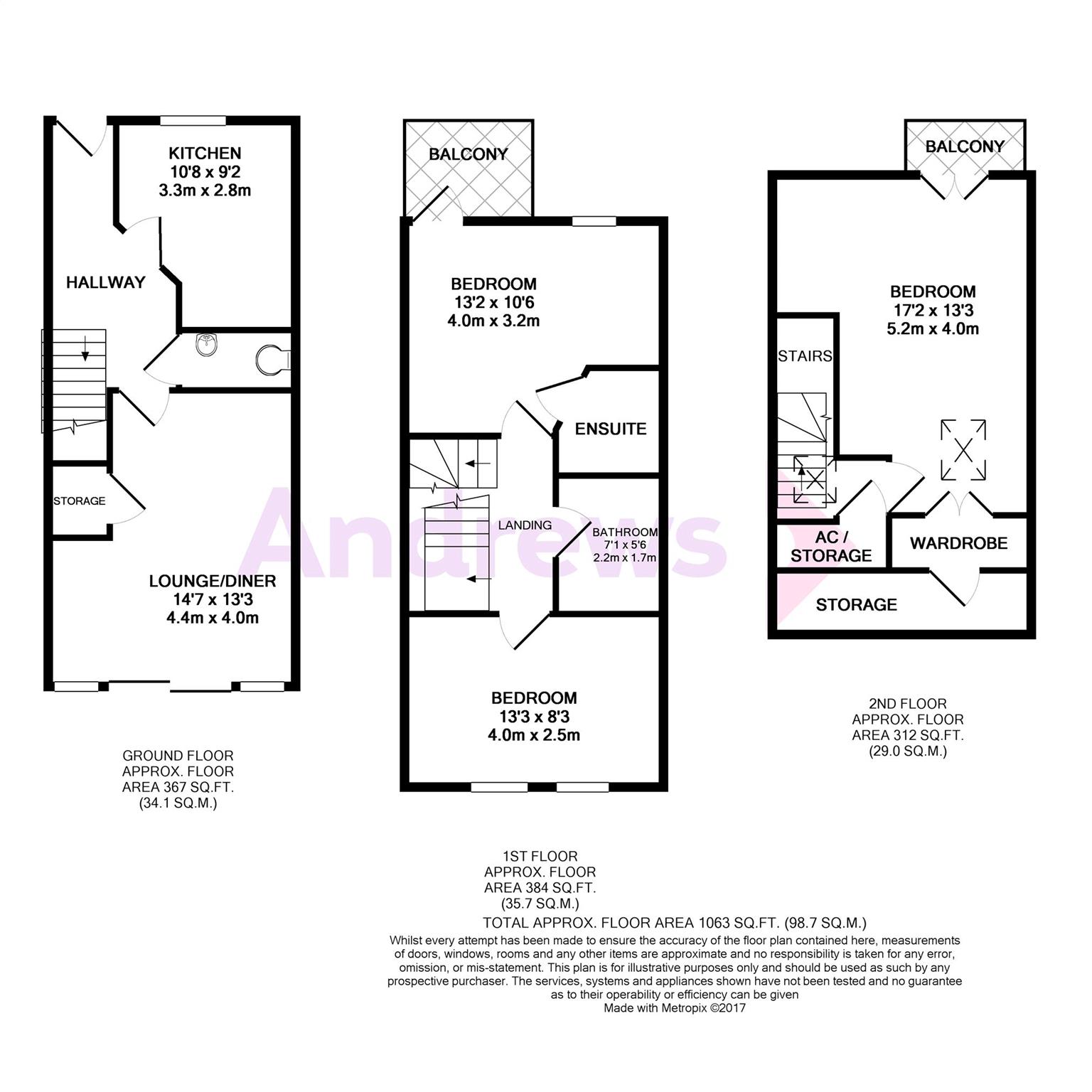 On the middle floor there is a family bathroom and two double bedrooms, one of which has an en-suite shower room and balcony.