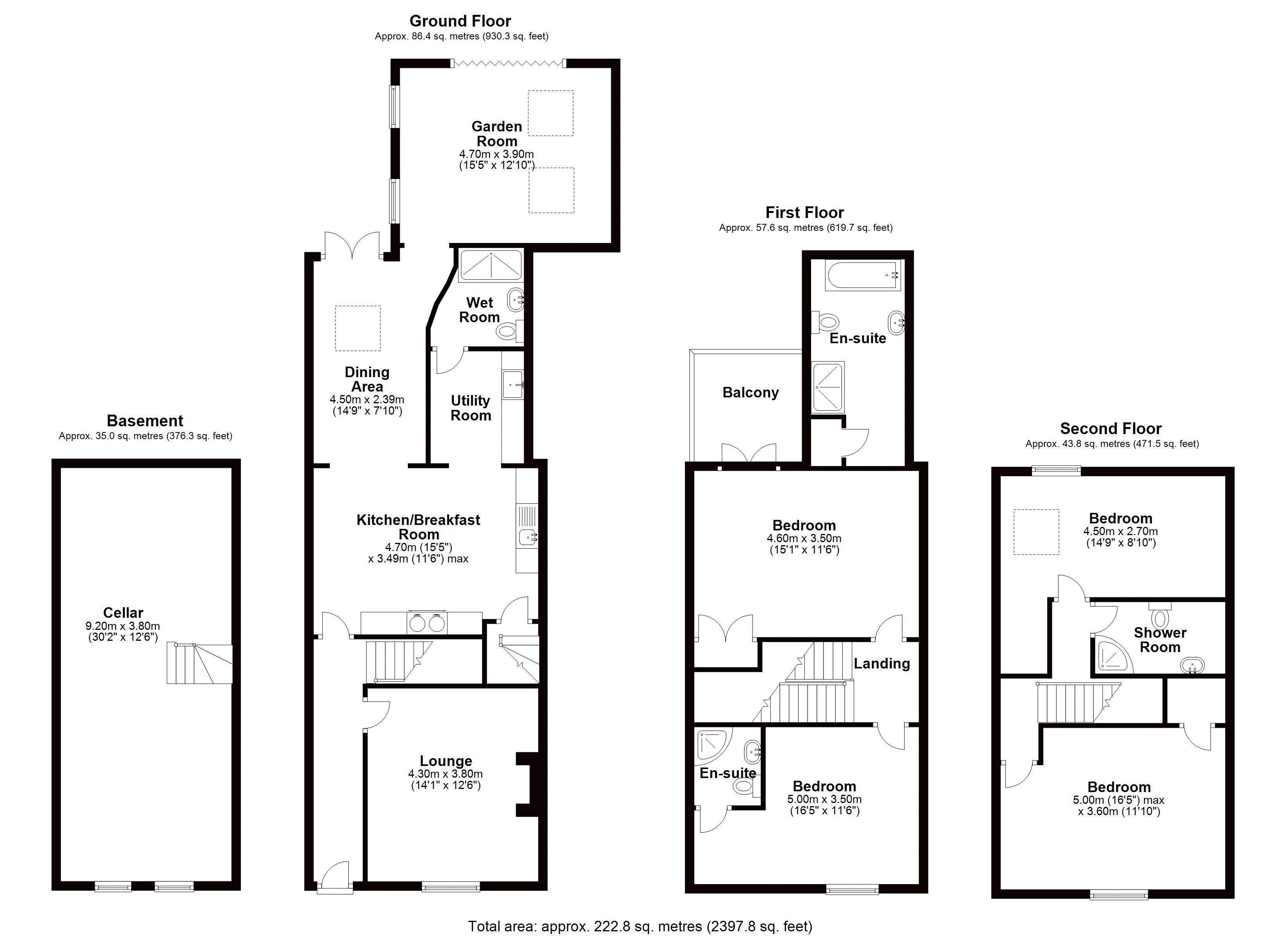 Grade II Listed period town house on the fringes of Broseley with delightful views across to the Deer Leap. Renovated to a very high standard with a combination of contemporary and traditional features. The spacious accommodation includes attractive bespoke kitchen/breakfast room with adjacent dining area leading to a light and airy garden room with wood burner and bifold doors out to the rear garden (all with underfloor heating). The ground floor also includes a cozy lounge, utility room and wet room. The first floor offers a lovely master bedroom with spacious en-suite (with under floor heating) and balcony, plus an additional en-suite bedroom to the front. Finally, there are two additional bedrooms on the second floor with family bathroom. A useful 30’ cellar runs beneath the property. Delightful, sunny gardens to the rear with terraced seating area, lawns and mixed borders. Off road parking to the rear. Well placed for access to country walks, local schooling and Broseley’s many amenities.