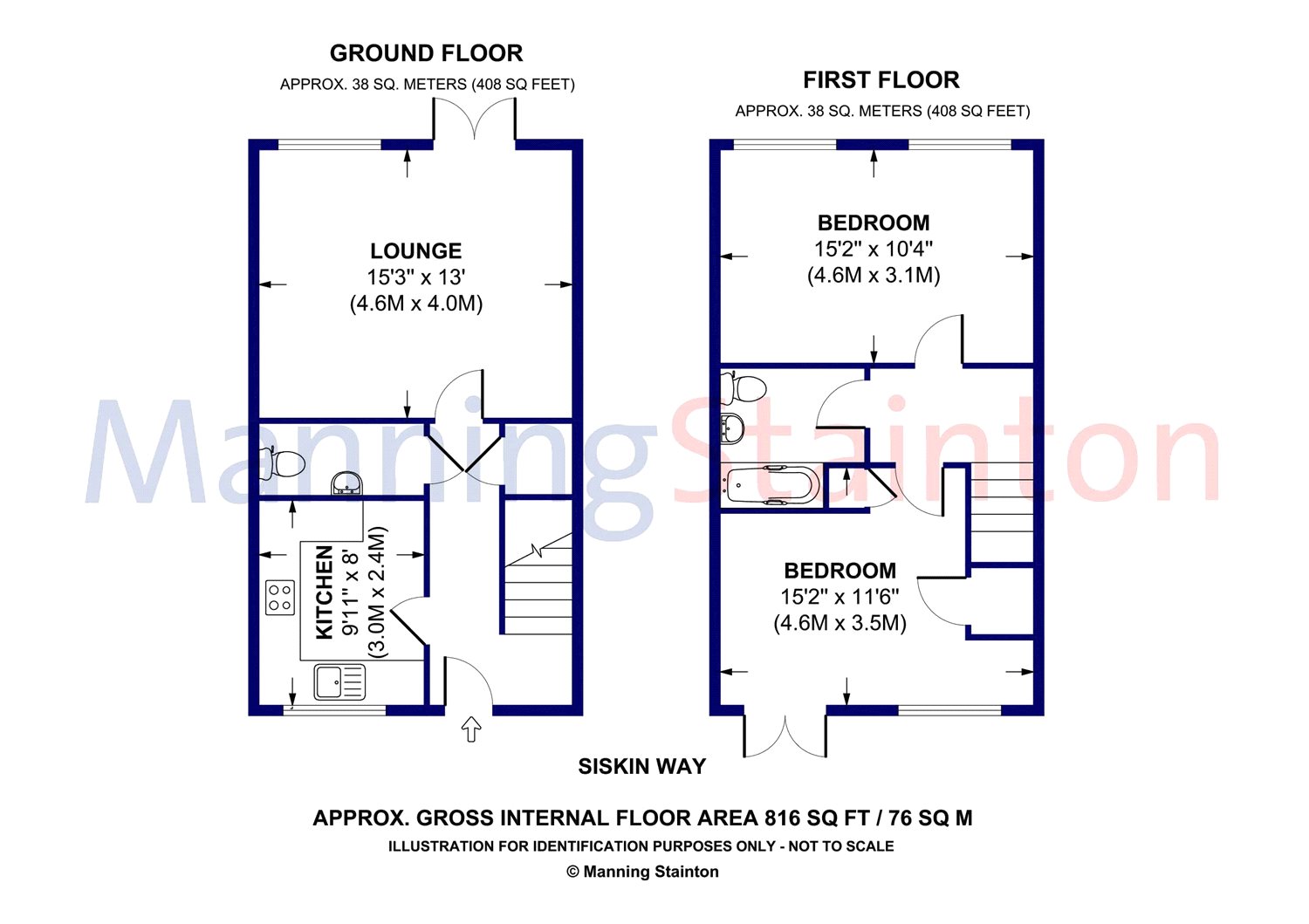 To the first floor are two double bedrooms and a family bathroom with a white three piece suite and over bath shower.