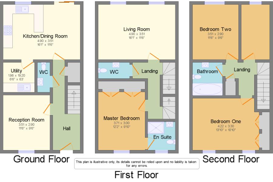 This property offers an Entrance hall, Cloakroom, Kitchen/dining room, Utility room and family room on the ground floor. With the Living room, Master Bedroom with ensuite and extra W/C on the first floor, along with a further 3 bedrooms and family bathroom on the second floor.