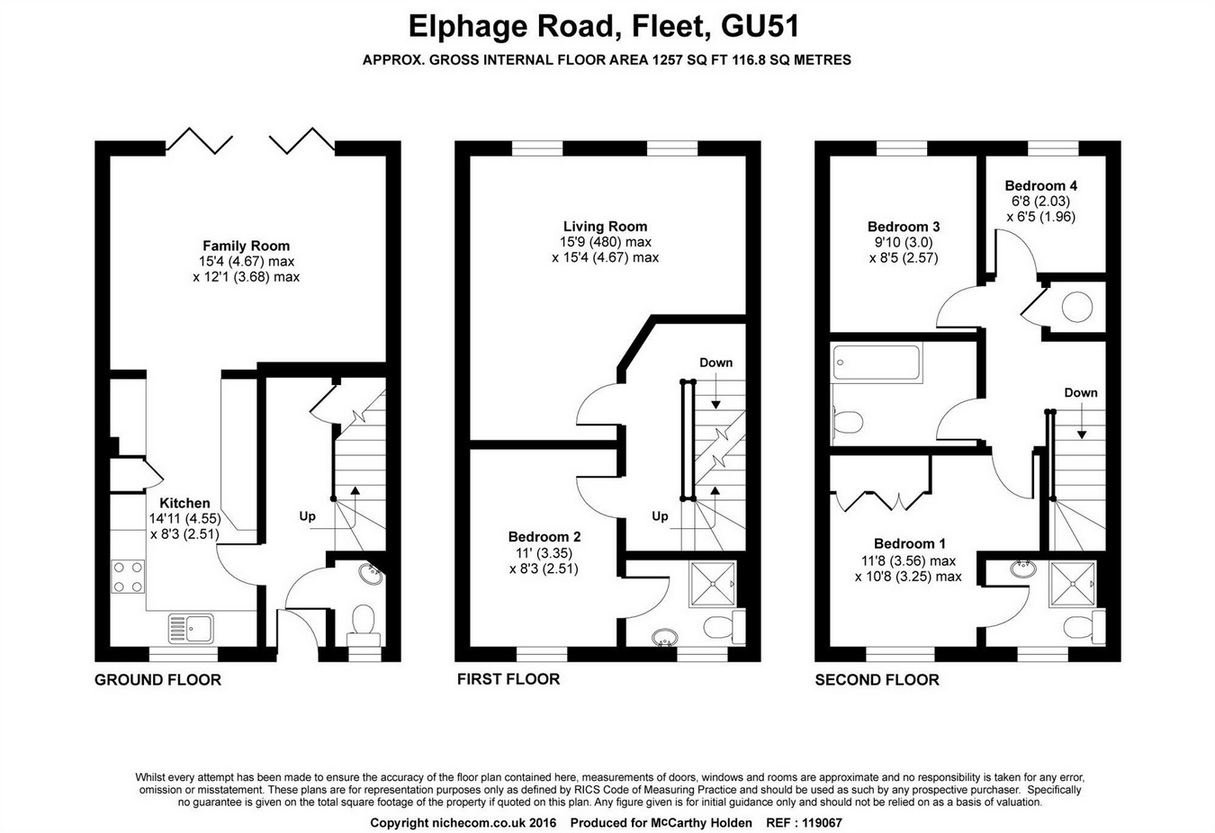 From the Fleet office of McCarthy Holden turn left onto Church Road. Continue to the T Junction and turn left onto Elvetham Road. At the first roundabout take the third exit and take the second exit at the next roundabout onto Elvetham Heath. Turn right at the next roundabout into Elvetham Way. Proceed straight over the next 3 roundabouts and at the fourth roundabout turn right into Giffard Lane. Follow the road to the right and take the second turning on the left into Elphage Road where the property can be found on the right hand side.