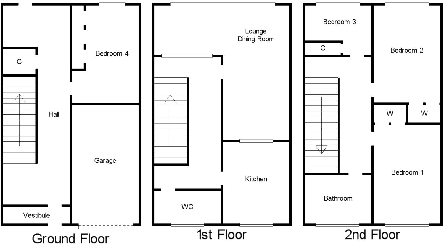The accommodation is over 3 levels and comprises of; entrance hall with storage cupboard, rear entrance porch and bedroom 4/laundry room with built-in storage located on the ground floor. Stairs lead to the first floor and to the l-shaped lounge dining room to front, fitted kitchen to rear and a cloakroom fitted with wc & wash hand basin. Further stairs lead to 3 bedrooms with built-in storage and the family bathroom fitted with white suite and shower over bath.