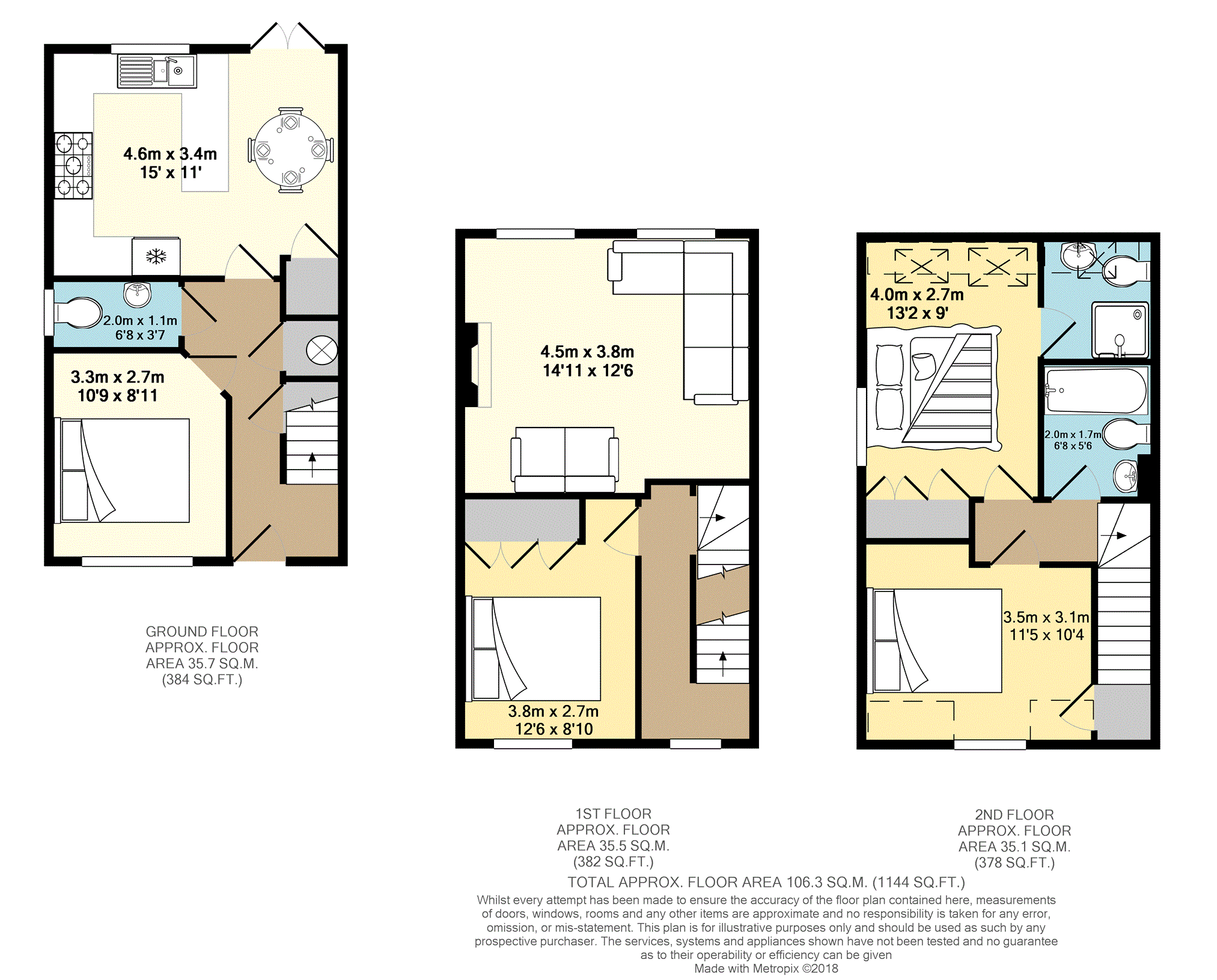 The double aspect lounge is on the first floor with bedroom three which benefits from built in wardrobes; the additional two bedrooms are on the second floor, the master with built in wardrobes and en-suite shower facilities with the other bedroom benefitting from a large storage cupboard. There is also a modern family bathroom on this level.