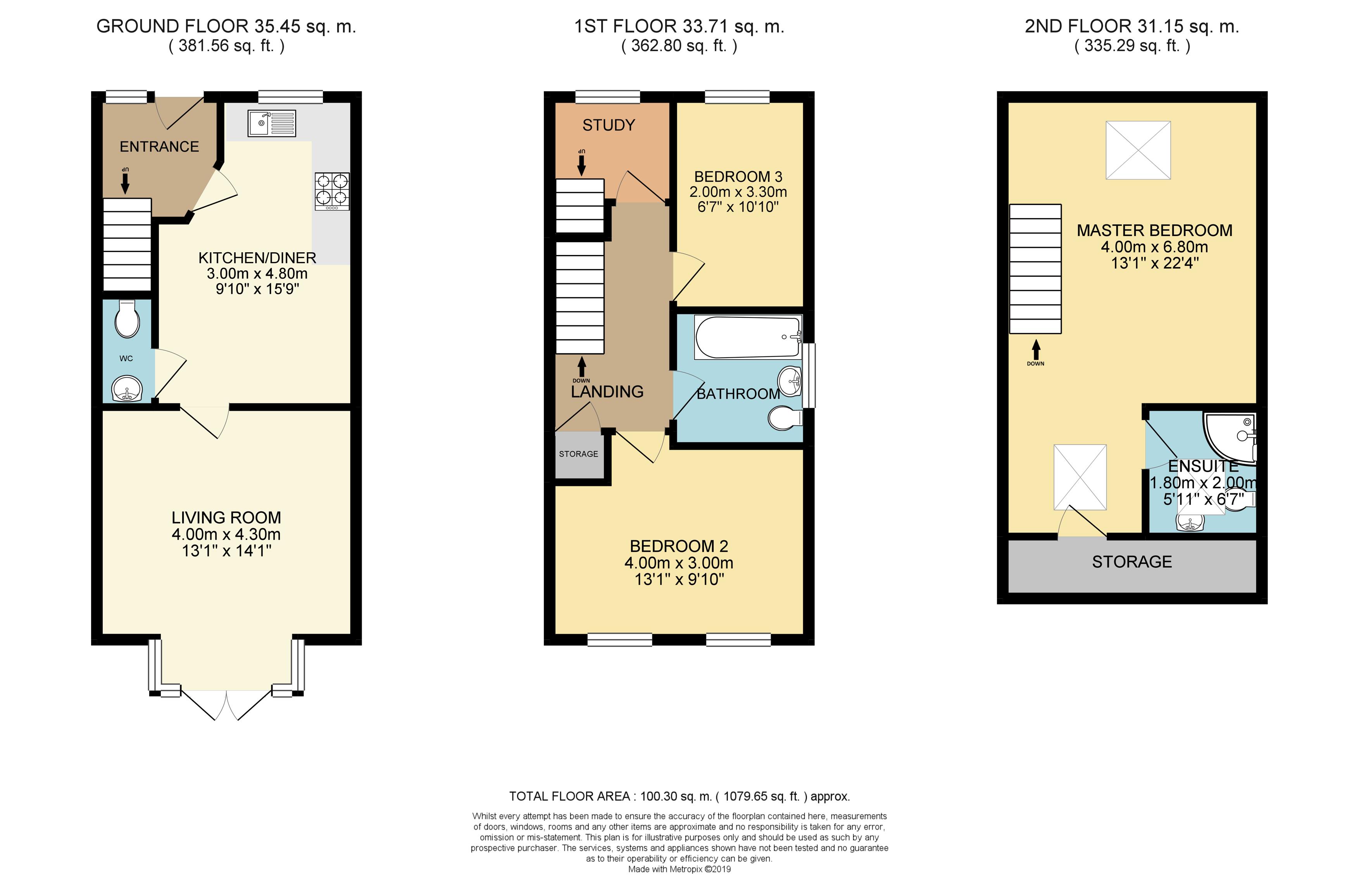 Accommodation is set over three floors and comprises: Entrance, kitchen/diner, living room, first floor landing, study, family bathroom and three bedrooms with en-suite to master. Externally there is a private rear garden and allocated parking.