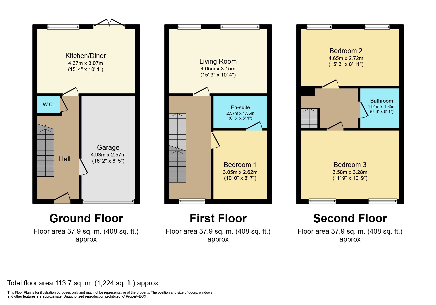 The internal accommodation briefly comprises; reception hall with cloakroom off and contemporary style dining kitchen to the ground floor whilst to the first floor there is a spacious lounge and bedroom with ensuite shower room. To the second floor, there are two further good size bedrooms and a modern house bathroom. Outside to the front of the property there is a garden and drive providing off street parking leading to the single integral garage whilst to the rear there are private enclosed gardens.