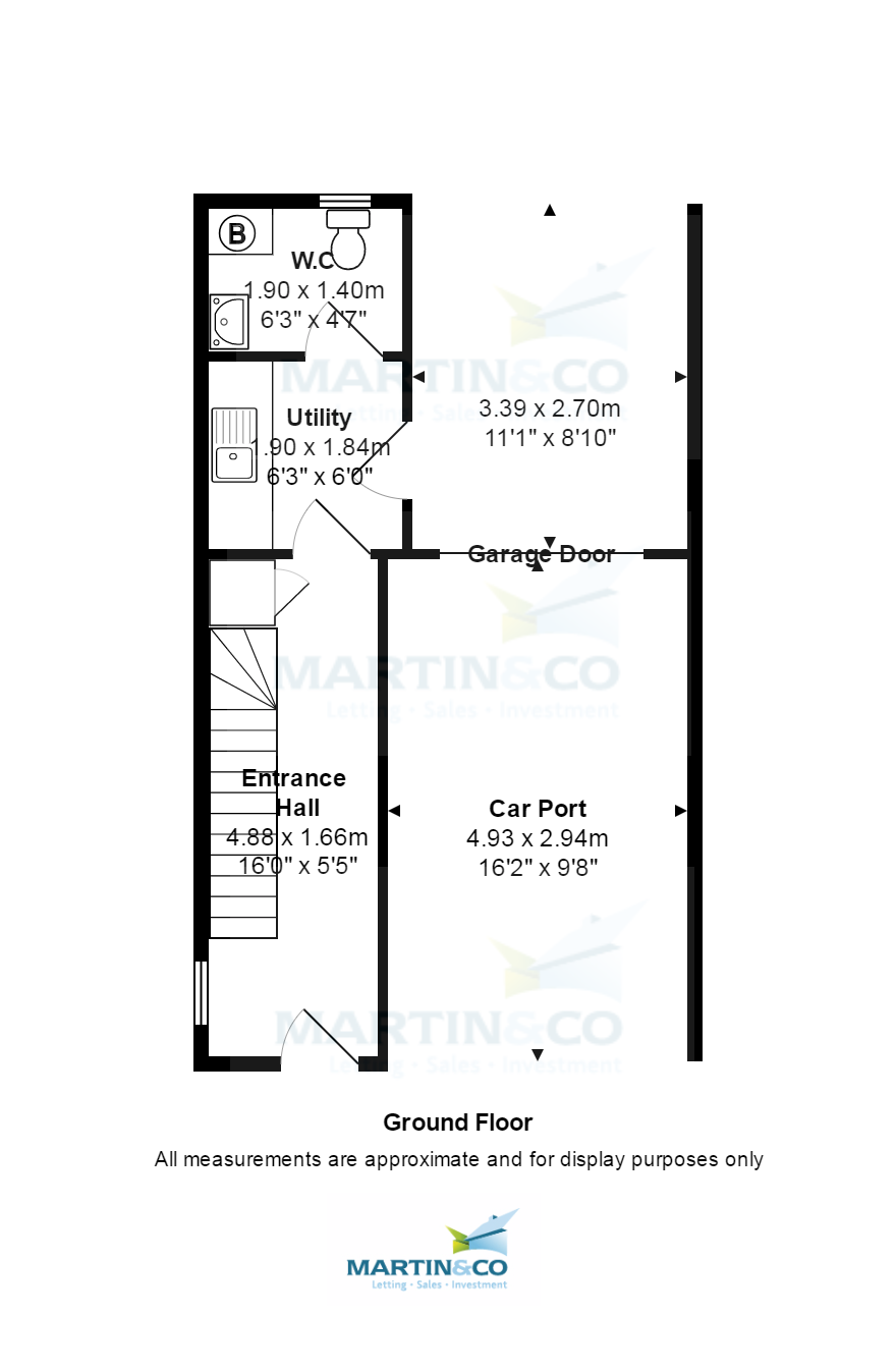 Utility room Situated on the ground floor and offering access to the back garden and car port, the utility offers base unit storage with plumbing for a washing machine. The downstairs toilet is also accessible through the utility.
