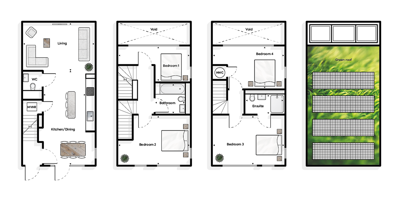 Working at the cutting edge of sustainability means your Citu Home will need less than one tenth of the heating an average UK home requires. All this will save over four tonnes of CO2 per year on average. And that's just the start. Renewably powered by rooftop solar panels and topped off with a green roof to improve biodiversity, the Citu Home can be your no.1 weapon in the fight against climate change.