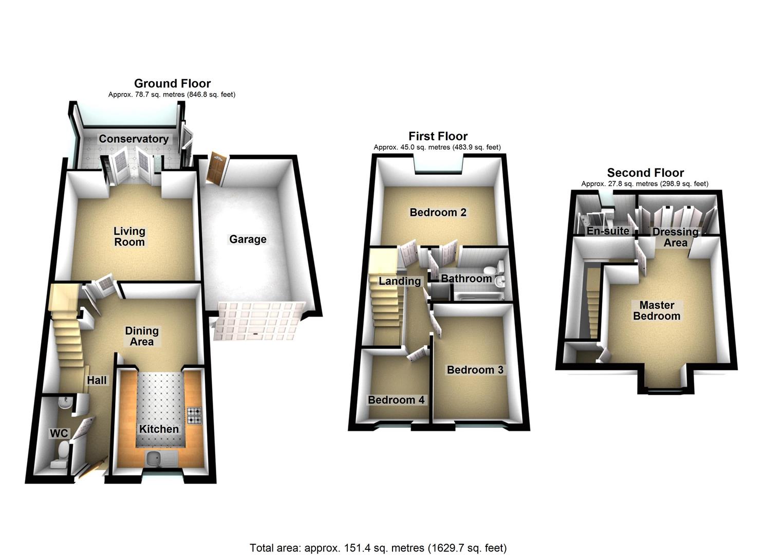 On the second floor there is a small landing area and door accessing the master suite. The master suite is a particular feature of sale with the main bedroom, dressing area and en suite shower room.