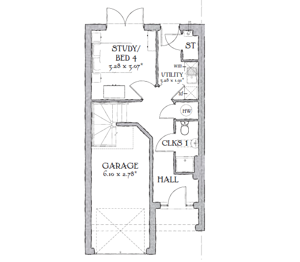 A study/bedroom with French doors leading out into the rear garden, utility room, shower room. And integral garage