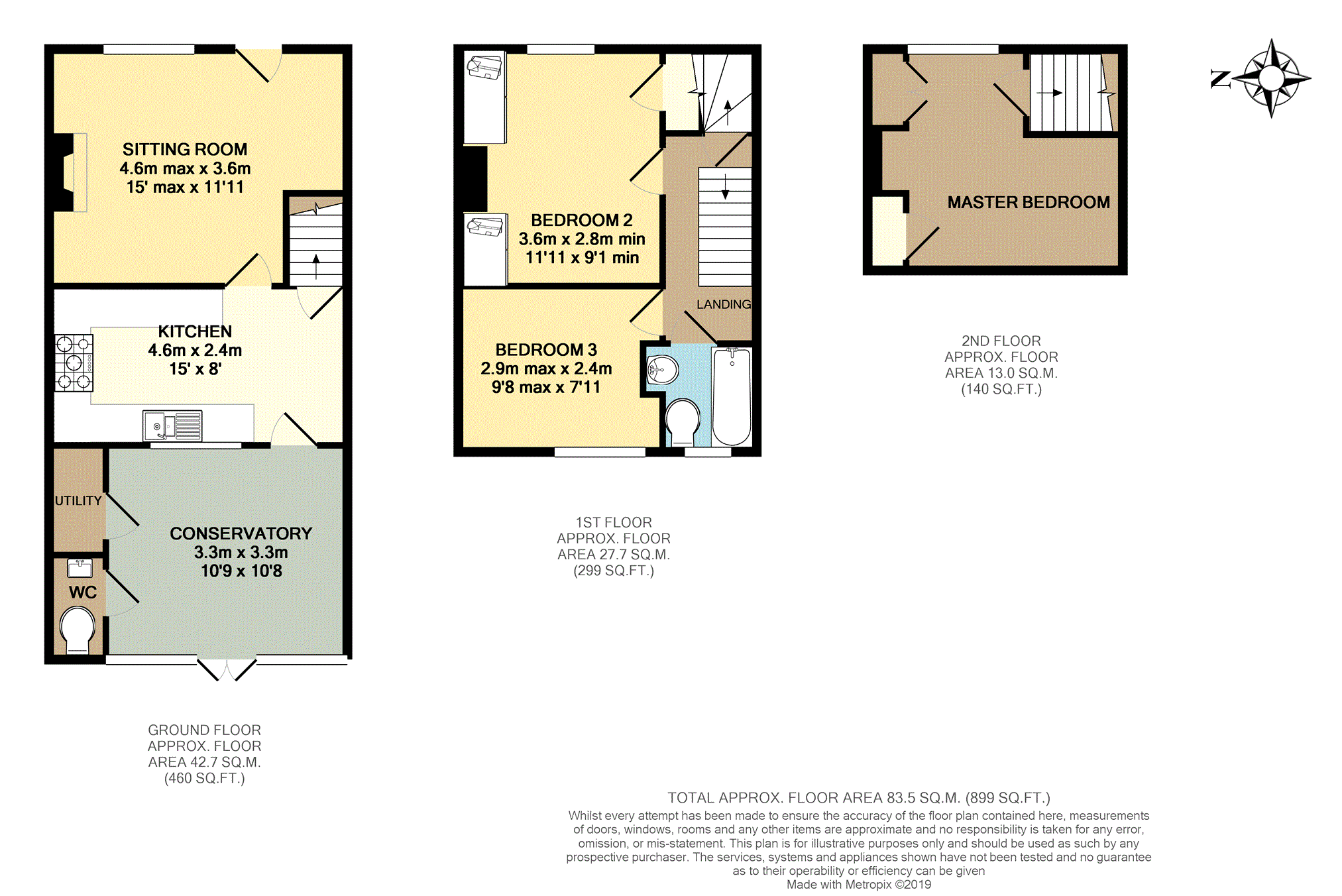The first floor will uncover two generous bedrooms with the second enjoying a front aspect window and having useful bespoke fitted wardrobes, and being adequately proportioned to take a double bed. Whilst the third enjoys a rear aspect and houses the gas central heating boiler. With charming bathroom also enjoying a rear aspect window and comprising a modern white suite with a panelled bath with shower above and folding screen, wc and fitted vanity was hand basin, all coordinated with tiled surrounds and with a heated towel rail.