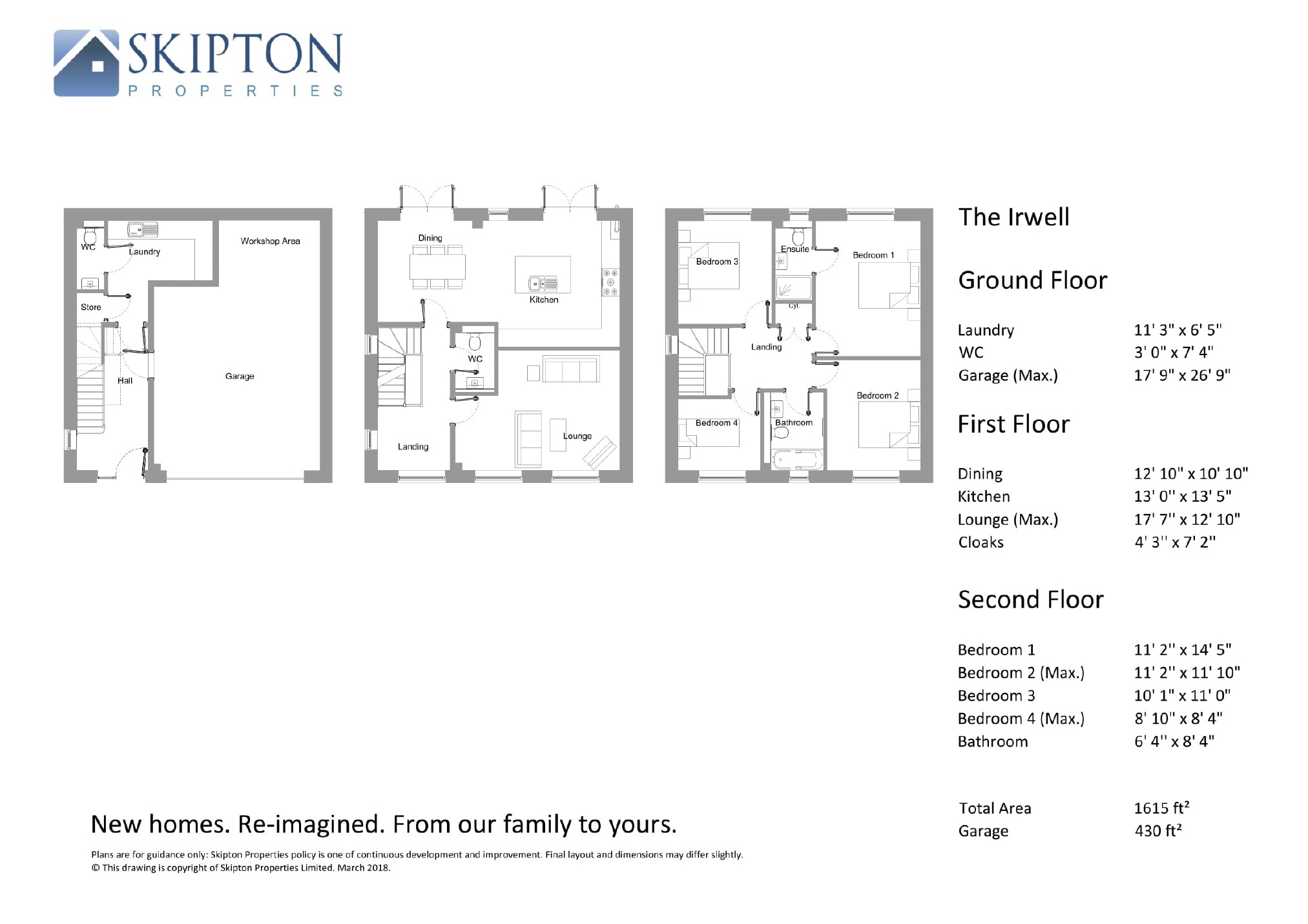 The Irwell is a large family home in this beautiful development in the Rossendale Valley. It features unique aluminium windows that have allowed us to reinvent the elevations seen in the original Kearns Mill. The Irwell homes occupy prime positions on the development and all feature landscaped south facing gardens that adjoin the wetland. Benefitting from a double garage, laundry, large kitchen and four bedrooms this home isn't short of space and is arranged across three floors meaning the top floor bedrooms will enjoy beautiful views across the valley.