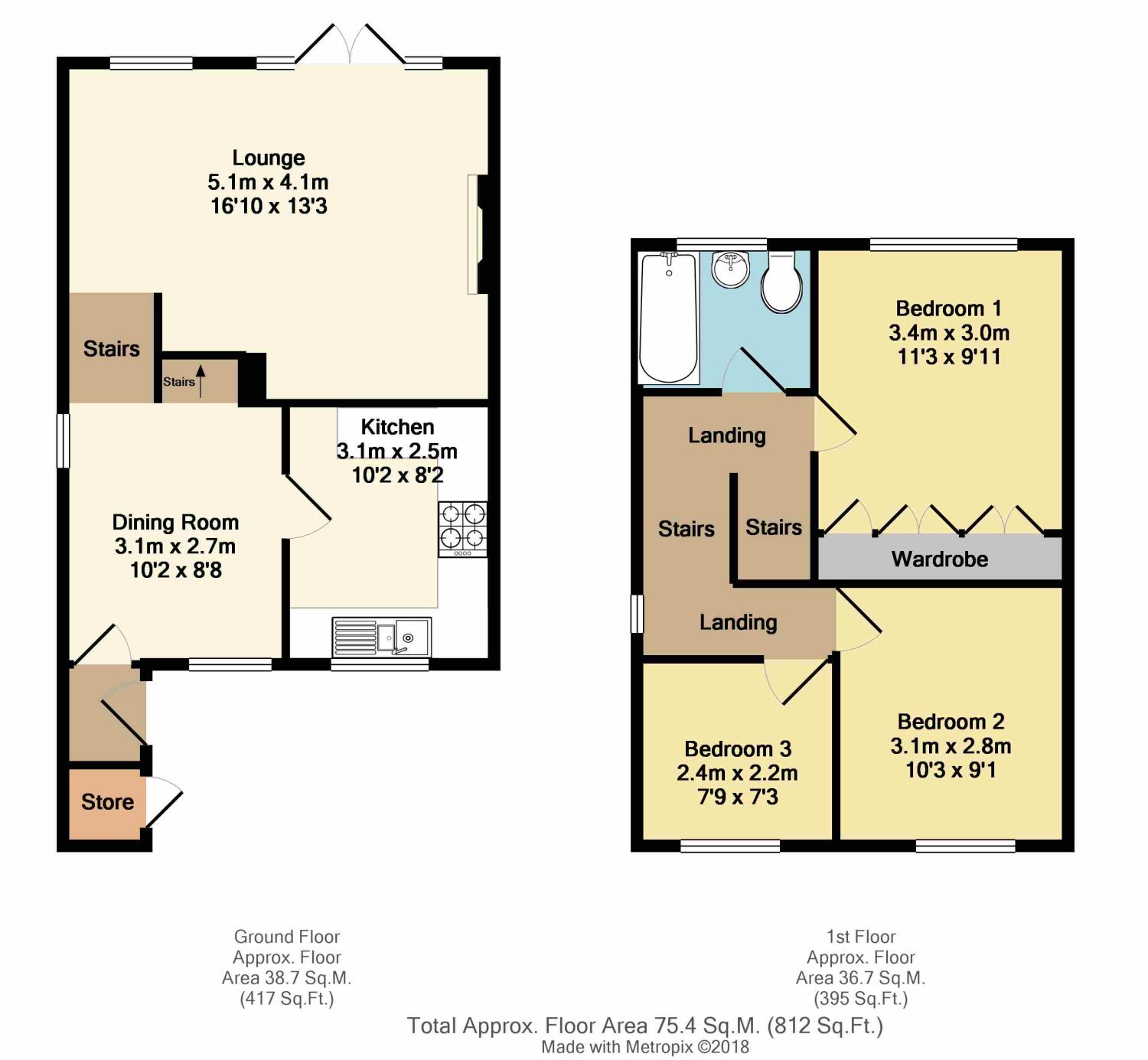 In brief the accommodation comprises; The front entrance door leads to the Entrance Porch and in turn to the Dining Room and fully fitted Kitchen. Steps lead down to the generous Living Room with feature fireplace. To the first floor are three bedrooms and the family Bathroom with white suite.