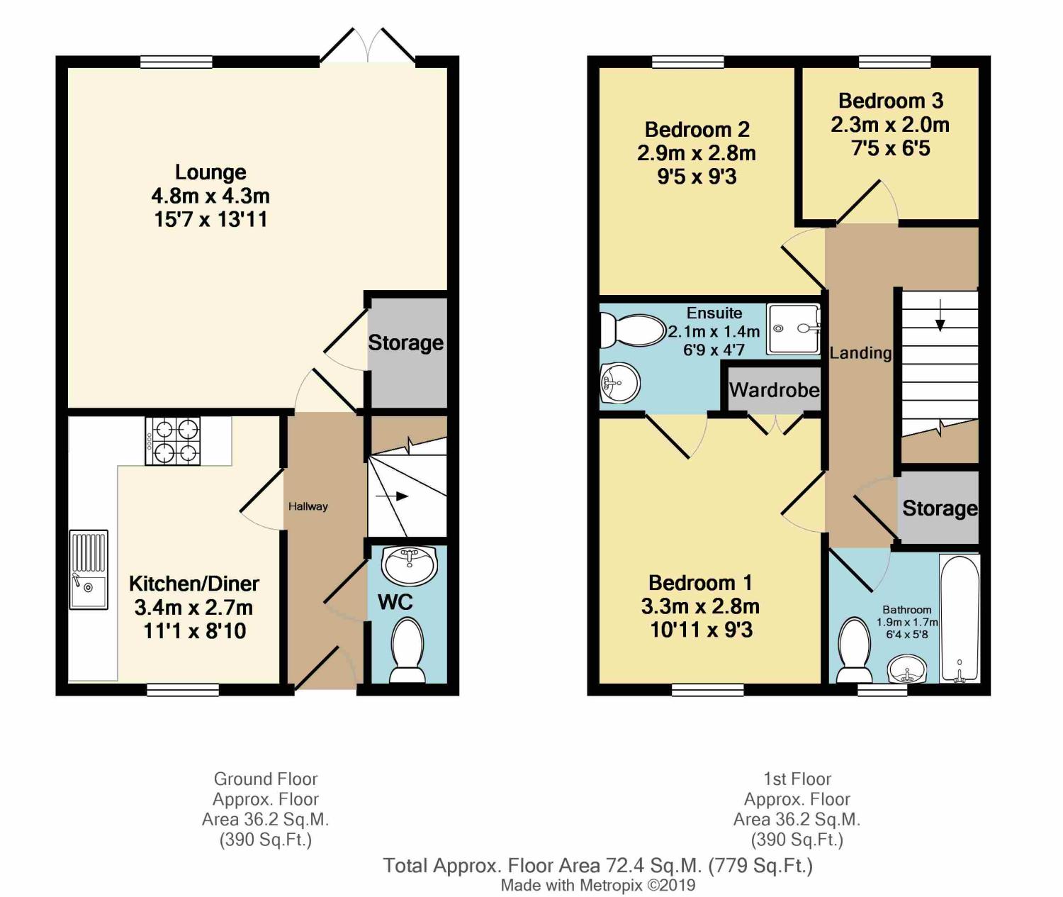First floor landing: Master bedroom leading into an en suite shower room, double bedroom two, bedroom three and family bathroom benefitting from a three piece suite in white.