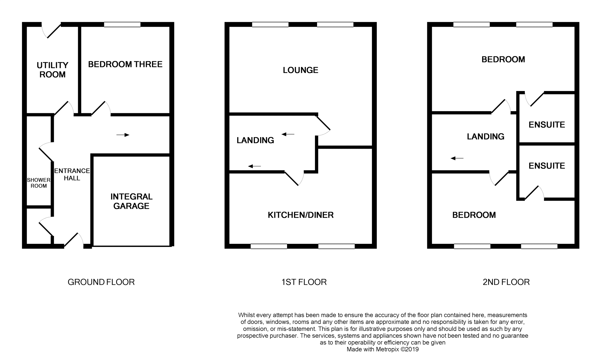The accommodation briefly comprises; entrance hallway, ground floor shower room with wc, utility room, bedroom three, first floor landing to the spacious lounge with dining area, superb dining kitchen, with a further flight of stairs to a second floor landing and master bedroom with ensuite. Bedroom two also has en suite facilities.