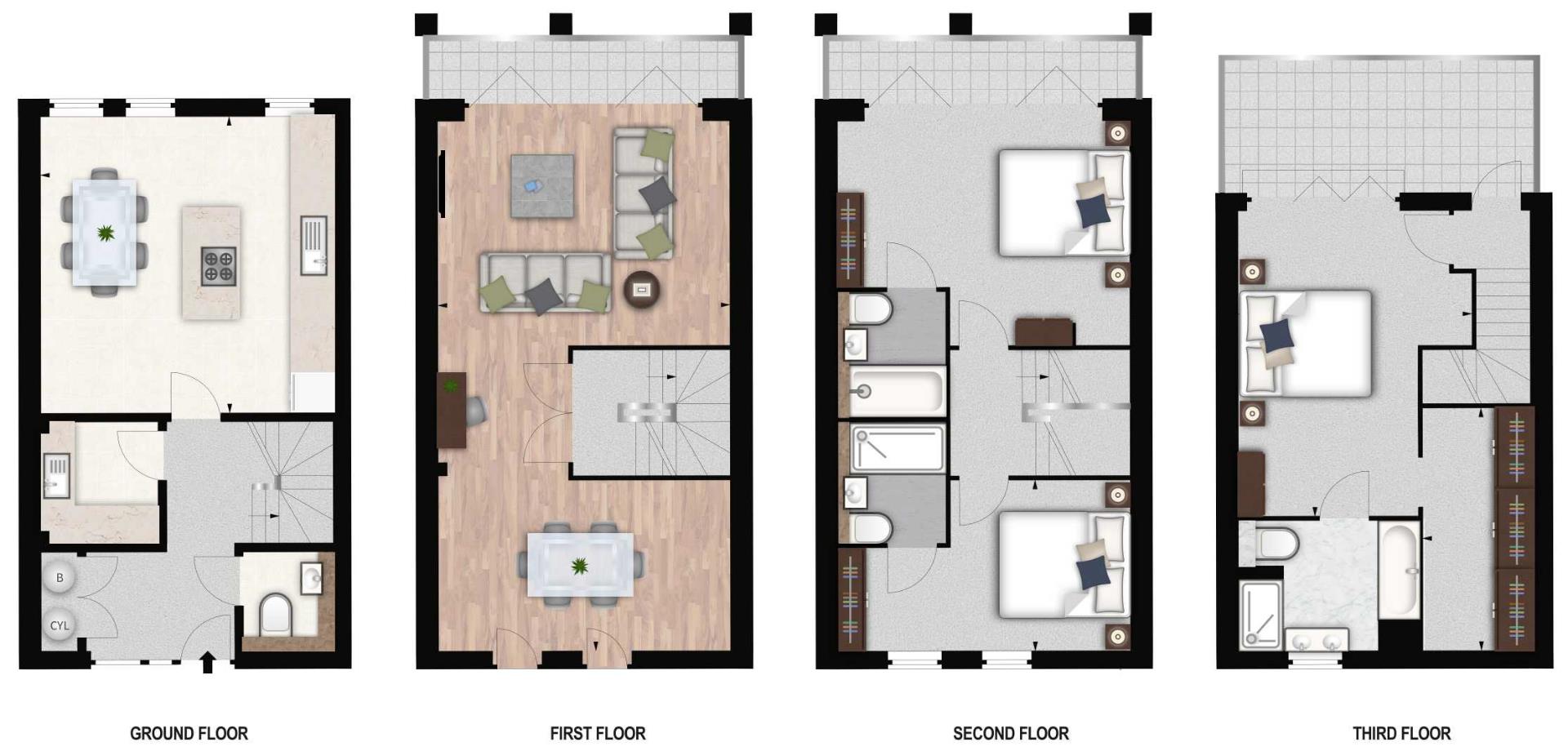 This property, which has been recently been refurbished and finished to the highest specification. Spanning over four floors and 1,800 sqft, with three large double bedrooms, all with en-suites and ample built in storage.