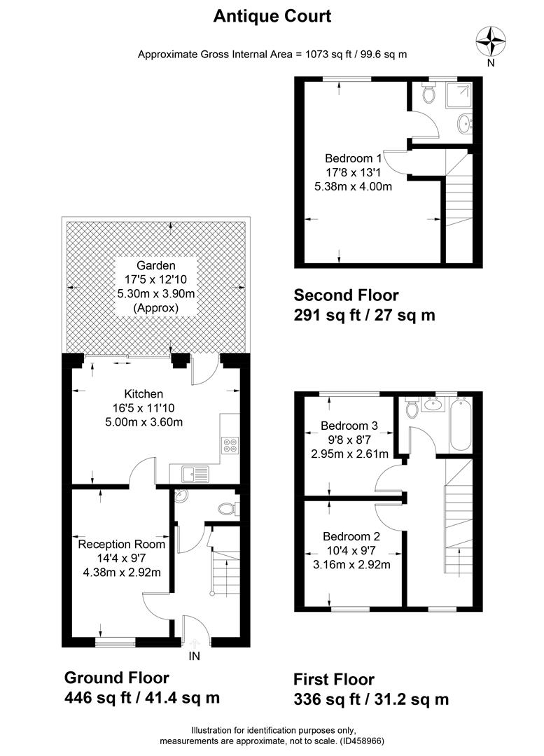 Spread over three floors and with over 1050 sq. Ft. Of living space; the first floor consists of spacious and bright living room which leads on to a huge kitchen diner. The kitchen comes with granite work tops and a dishwasher with sliding doors leading out to the south facing patio garden.