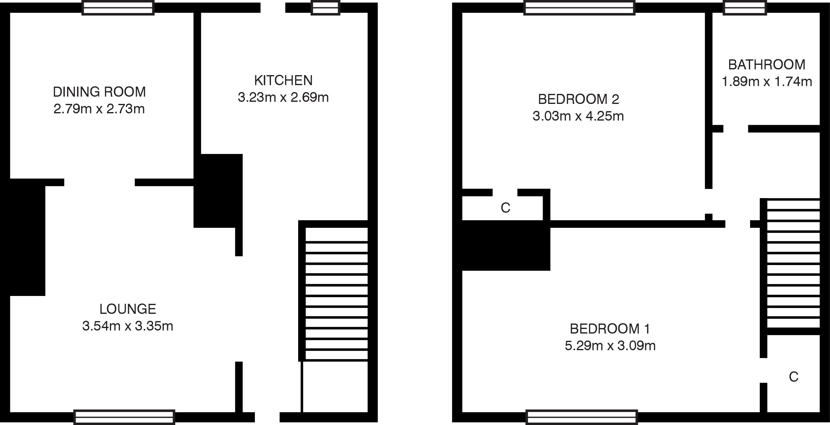 The accommodation is arranged over two levels. On the ground floor the property has been opened up to feel more open plan. To the front is the lounge with a large window and a dining room off to the rear off the house. Also rear facing is a kitchen with a door direct to the gardens. On the upper level are two good sized double bedrooms and a family bathroom.