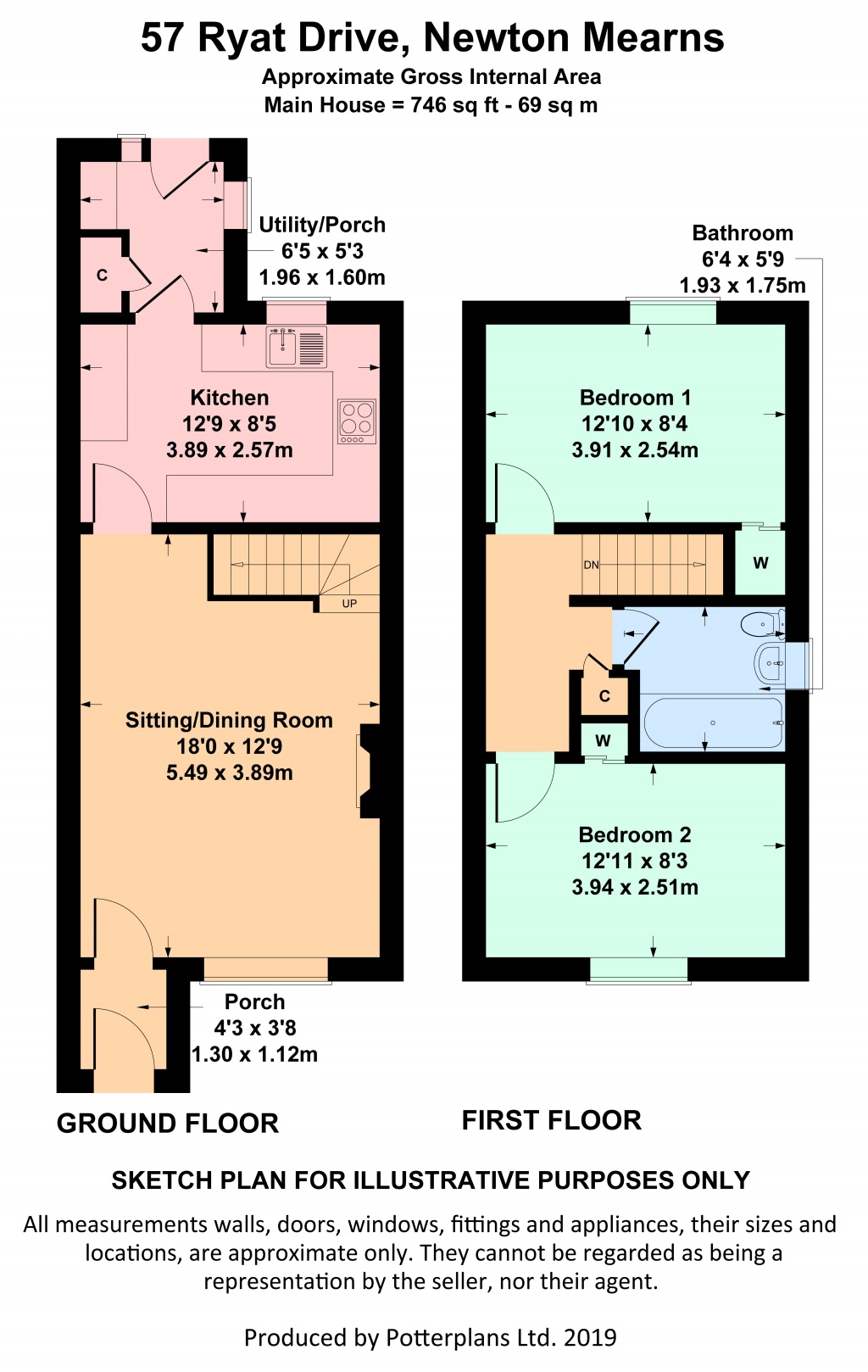 Ground Floor: Entrance hallway. Sitting/dining room with staircase to upper level. Well appointed kitchen with a full complement of wall mounted and floor standing units and complementary worktops. The kitchen affords access to the utility porch and garden grounds.