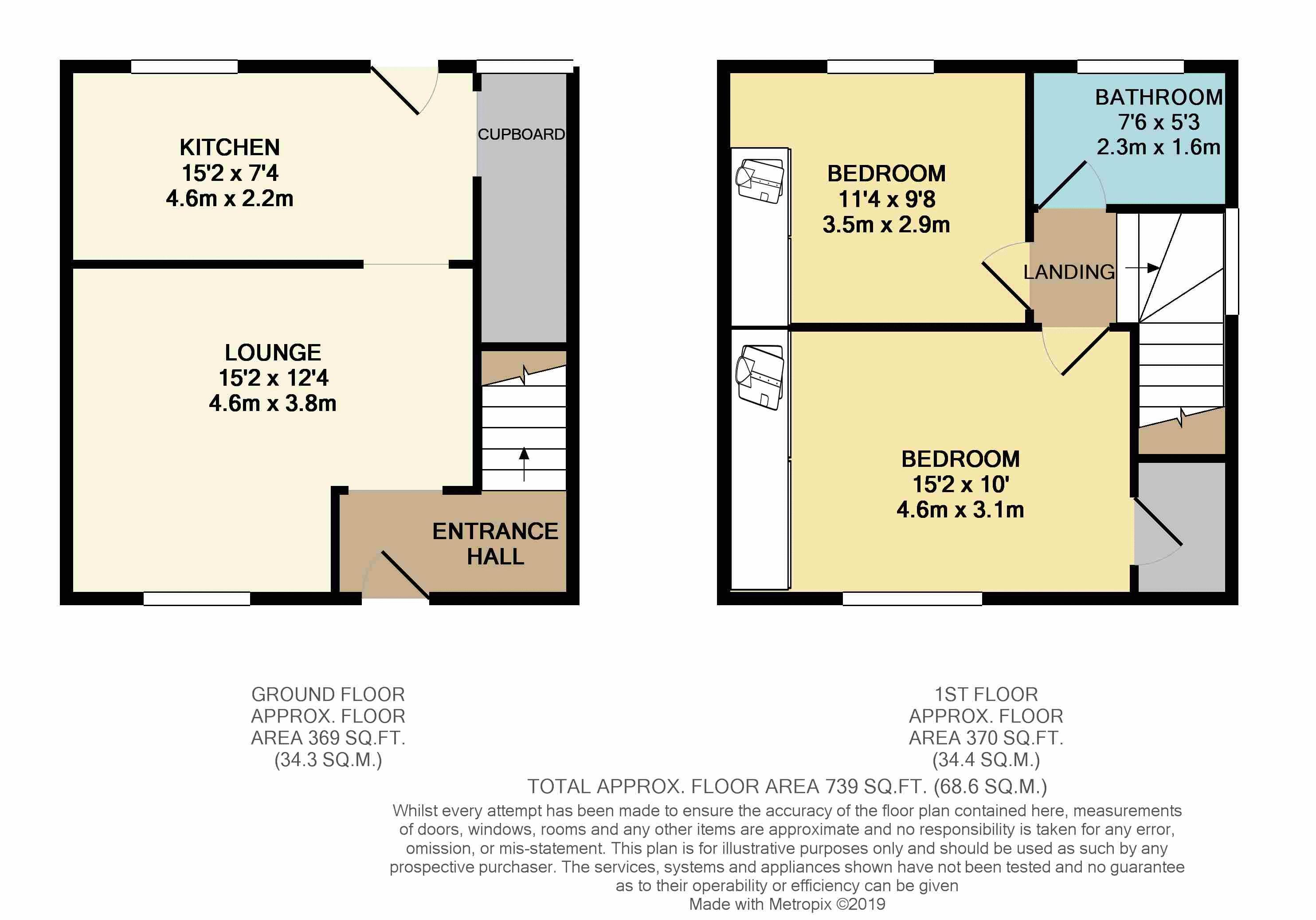 The accommodation on offer is split over two levels with the ground floor comprising welcoming entrance hallway, bright and spacious front facing lounge with feature fireplace and recently upgraded kitchen with integrated kitchen appliances. On the upper level you will find a three piece contemporary style family bathroom suite with corner bath and two large double bedrooms, both with excellent storage space. Features of the property include double glazing, GCH and a loft adding to the already ample storage available. Externally the property benefits from low maintenance enclosed front and rear gardens and expansive driveway offering off street parking for multiple vehicles.